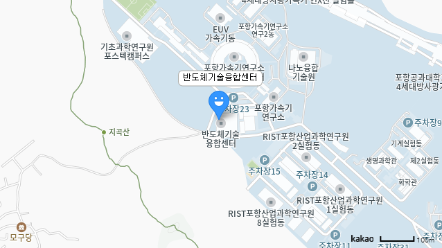 *검색 안될 때에는, '포항가속기과학관' 검색 후 뒷쪽 신축건물(Fab2) 이동
